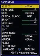 The lens shift feature on the PJ-TX100 isn't the best we've seen and provides only 3/4 screen height adjustment up or down and 1/4 screen adjustment left and right, BUT for what is now priced as an entry-level projector this is better than most. In addition, a reduced lens shift range ensures better overall color accuracy in all available positions.