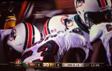 Check out the shot of Charlie Batch. Close-ups like this were outstanding, and watching the tried and true commentary by none other than Al Michaels and John Madden was great. Now, if Joe Theismann would just retire from his tired "overstating-the-obvious-and-getting-his-facts-wrong" Monday Night commentary, all would be well. I swear, the idiot who put Theismann on Monday Night Football should be forced to actually listen to him provide commentary on a game - just once they should do it.