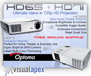 Optoma, a leading manufacturer of award-winning digital projection and display devices, introduced two new 720p home theater projectors today at CES Las Vegas. The HD65 and the HD71 bring accessibility to high-definition, big-screen video content. The Optoma HD65 and HD71 combine amazing picture quality with extensive connectivity options for optimum performance.