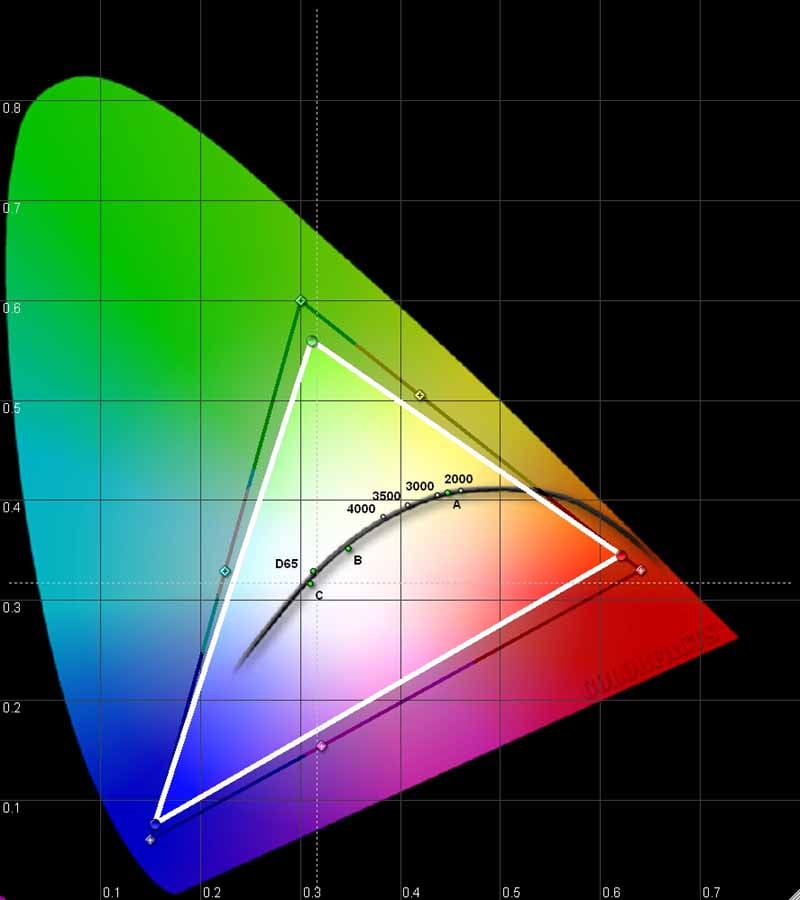 DV11-CIE.jpgI do not recommend calibrating this projector. Frankly, it didn't seem to need it. With the measurements we took, once we selected the correct settings, the performance was on par with what we'd want to see in our particular viewing room. If there was a deficiency it would have to be that it had a slight saturation loss for both green and red. We have seen a LOT worse, so it didn't particularly bother us.