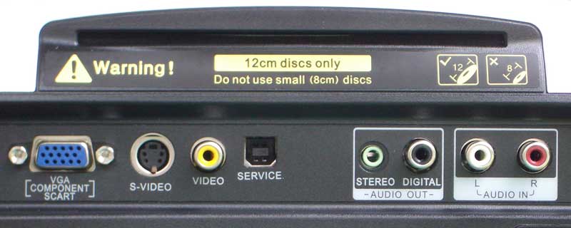 Taking a look above the inputs and outputs you'll see the new slot-loading integrated DVD player. This is a pretty nice feature and gives the DV11 a much slicker look and feel over the DV10. A USB "Service" port is not usable by consumers and is apparently for updates and diagnostics at a dealer repair facility or the manufacturer.
