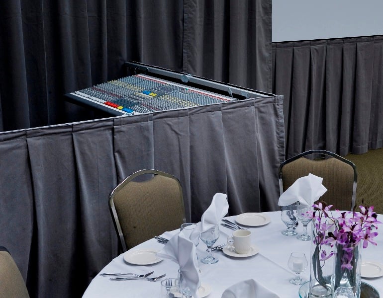 Drapery Surround is the perfect solution for concealing equipment areas, tables