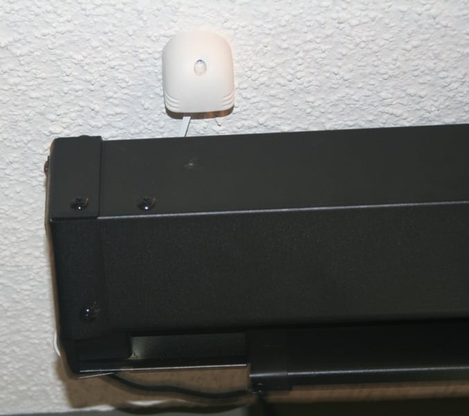 One thing we didn't quite understand was why the screen edge had to stick out of the casing when fully retracted. We thought of manually setting the retraction point for inside the case but all the pictures on the Da-Lite material showed it hanging out a little bit. This made for a less than clean look and we would have preferred to have it flush with the bottom of the case.