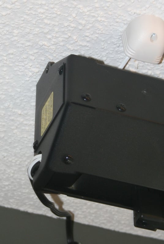 The next step is to connect all the wires. The power is as simple as stripping the end off an extension cord and connecting it to the supplied wires. The IR and wall control both connect via phone cord-ish (RJ11) connectors so that is really easy. Da-Lite gives you plenty of cable for all but the longest runs. We ran the wall control cable from one side of the screen to the other, up into the ceiling, and then back down the wall near the back of the room. We ended up having just enough.