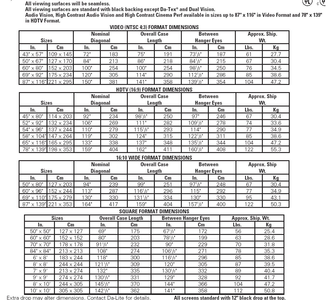 We're sure some of our more astute readers will notice that the base price and the "as tested" price are significantly different for this model. There are some very good reasons for this. To start with, we asked for a non-standard screen size. This meant a custom cut. Even with that, the time we asked to the time we received the screen was about 1.5 weeks. Yes, weeks. Da-Lite is obviously used to filling custom orders quickly. The floating bracket, IR control, and 'silent' motor all added to the cost. For a full breakdown, we have: