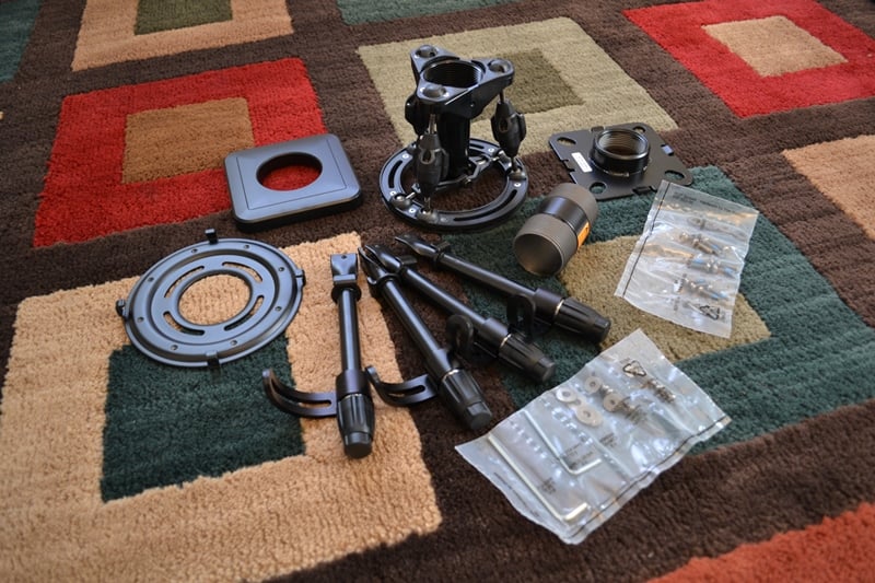 Note about the PJT40: As of publishing this review, I have been using the OmniMount PJT40 for about a month. It hangs down a little lower than my previous mount, the OmniMount 3N1-PJT, but is a big step up in every way. Fine adjustments were ridiculously easy thanks to the MicroDial system and the projector hasn’t drifted at all. All of the parts are above-average quality, which means you can feel confident the projector will stay mounted and not end up in your lap half way through a movie. The PJT40 is a little on the expensive side, but I think that the ease of install and high quality construction make it worth it.