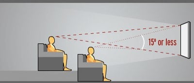 Note that the closer the projector is to the screen the brighter the image will be. You can always turn the brightness up or down to suit your preferences. If the system is going in a room that will have ambient light, then the closer to the screen the better, as long as you stay within the rated throw range of your projector. Also note that some screens have a minimum distance requirement, meaning that the projector has to be a certain distance away from the screen in order to avoid hotspotting (when the center of the image is brighter than the edges). Check your manual to see if this is the case with your screen. With all of that said, you can usually get a little deeper black levels with the projector farther away. Also consider the noise of the projector when running. The fan in some projectors is loud enough to be heard during quite scenes of a movie, so mounting it a ways behind your seating position isn’t a bad idea. By the time you have taken into account the minimum distance requirements of the screen, throw distance of the projector, seating locations, and ceiling fixtures, you will probably have a very limited spot to mount the projector.
