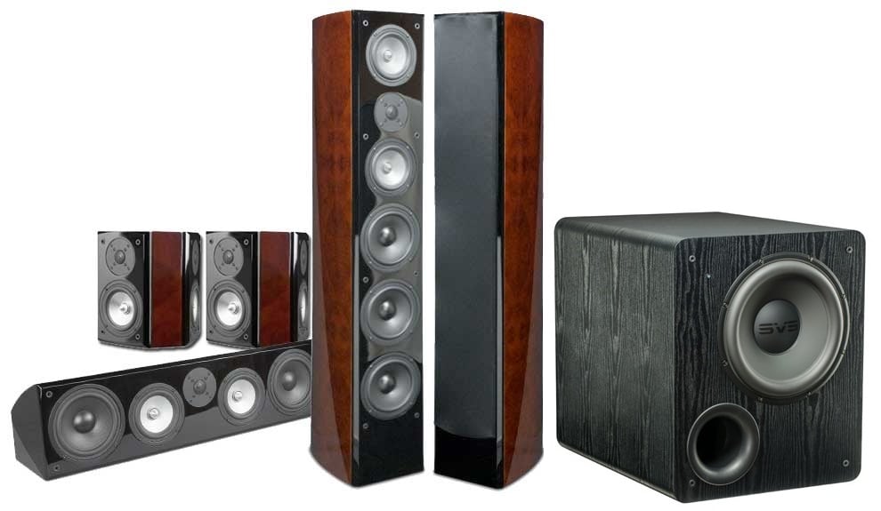 We actually have two subwoofers to recommend for this system: the choice depends on the size of your space as well as how large of a subwoofer you’re willing to tolerate. For larger spaces (say 3,000 cubic feet and up), we’d recommend a pair of SVS PB2000’s; conversely, if your room is relatively small, or you just don’t like the idea of looking a large subwoofer every day, a pair of relatively compact SB2000s would be the better choice. In either case, you’ll need to prepare yourself for seat shaking low end output; even the petite SB2000 is rated to deliver output down to 19Hz (-3dB) while the PB2000 extends marginally deeper, down to 17Hz (-3dB). Output capabilities are also sure to satisfy all but the most ardent of bass-heads, with a single PB2000 delivering greater 110dB or more from 32Hz on up, measured at 2 meters distance, outdoors. Of course adding a second subwoofer to the mix will provide a boost in output, as well as the potential for more consistent bass response among your seats.