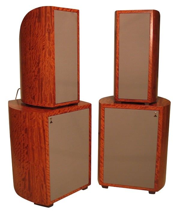 For those seeking state-of-the-art speaker design, a very attractive alternative to the JBL M2s are the Legacy Aeris speakers. Released at roughly the same time and sharing nearly the same price ($20k), they also both come with their room correction equalization processors to better remove the room’s acoustics from the end sound. Like the M2s, the Aeris have met with intense acclaim since its introduction. However, unlike the M2s, the Aeris are drop-dead gorgeous speakers, and come in a variety of exquisite finishes. Their ravishing good looks do not come at expense of performance either. The Aeris is a feat of audio engineering mastery; a 4 ½ way full-range speaker with a passive open-air top section for dipole dispersion which turns into a cardioid dispersion from 200 Hz to 80 Hz. Below 80 Hz, the Aeris uses a hybrid bass-reflex/ passive radiator subwoofer system with two high-excursion 12” woofers and a 12” passive radiator hidden at the bottom of the speaker. Each of the subwoofer drivers have their own 500 watt amplifier which adds up to a kilowatt of amplification for the deep bass of each speaker alone. The open-air top section uses a 4” AMT folded ribbon tweeter with a 1” AMT super-tweeter, and these tweeters carry the frequency range above 8 kHz. A titanium-encrusted 8” midrange woofer takes over from 8 kHz to 2.8 kHz (an astonishing range for a 8” woofer), and a 10” midwoofer takes the range from 2.8 kHz to 80 Hz.
