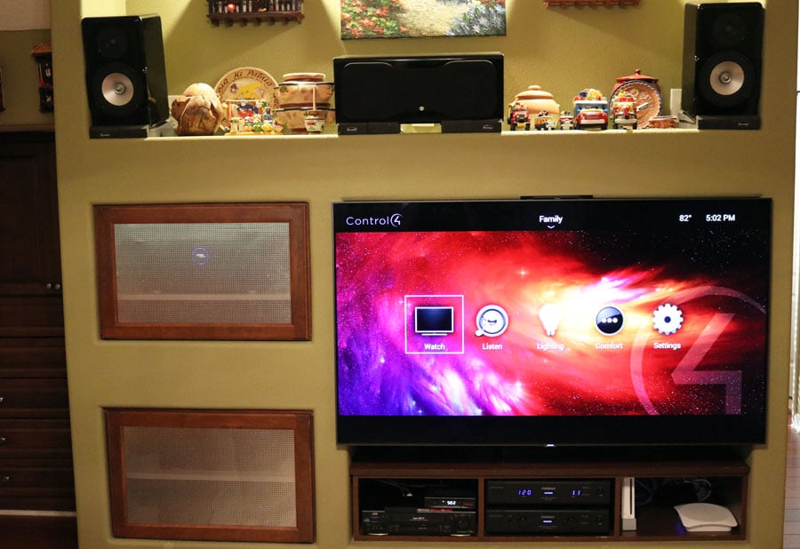 For the past 15 years I struggled with finding a whole home control system and was mostly wrestling with the multiple OEM remote controls haphazardly to operate my theater systems. This needed to end so I contacted our friends at Control4 and they agreed to put me through a rigorous four days of training of their Composer Pro software to learn how to program their home automation products. With the installation help of our friends at HD2020, we were on the right path for controlling ALL three of my theater systems including distributed audio and lighting. The backbone of the system was a complete revamp of my wireless network using Pakedge 1GB network gear including their: RK-1 7-port router, SX-24P8 24-port and SE-8 8-port switches and 3 WK-2 802.11ac Wireless Access Points spread throughout the home. A complete rewiring of my entire home from CAT5e to CAT6 was done to ensure full potential and stability of this system was achieved. The main theater room features a Control4 EA-3 controller which allows high resolution music streaming to both the theater and 2CH systems digitally while also controlling the lighting in the room. Using their Zigbee network, the lighting control handles ALL ceiling lights, the sconces, and the riser platform. Scenes were created to turn specific lights on/off when hitting pause or resume on a movie. We even integrated Alexa Home for voice controls and I changed my voice prompt to "computer" as a homage to Star Trek. It's a nice feeling to enter my office in the afternoon and say "Computer, turn on main lights" and it obliges without me ever having to flip a switch. The EA-3 controller also handles the Integra Research DRX-4.2 AV receiver that powers the master bedroom system in coordination with the main EA-5 controller located in the family room. An additional EA-1 is located in that room to control the Panasonic Plasma TV and local lighting functions. We have both a Control4 10” Tabletop Touch Screen and 3x SR260 handheld remotes to operate the systems around the house. The Control4 touch screen is nice for its visual representation but the SR-260 is much easier to handle and preferred in the bedroom systems and when quick operation over fancy operation is the priority.