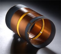 Figures 5a –c Bottom right: DD-18 Driver with 1’ ruler included for scale; Top left & right: driver and voice coil. Bottom left: close up of motor assembly. At left in image: power leads encased in surgical tubing. Image center: bottom of drivers two linen spiders showing. At right of image: Accelerometer leads. Velodyne doesn’t attempt to make their drivers pretty for press photo shots. You won’t find any chrome or gold finish, just a raw, high performance driver. But then again, beauty is in the eye of the beholder.