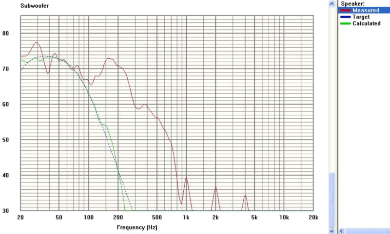 ARC's PC-based software shows the measured response of the speaker, the target response, and the calculated response post-correction.