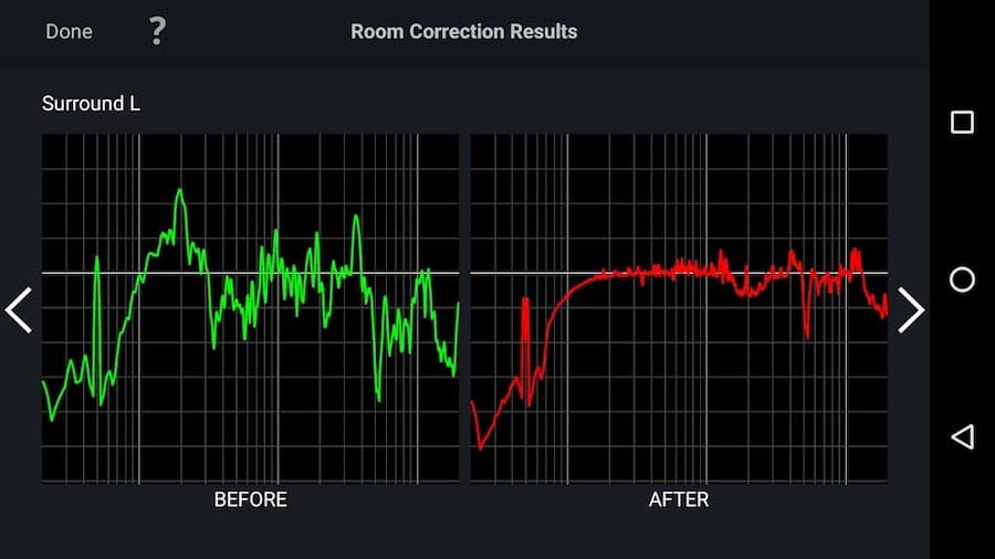 - View before and after results of the Audyssey calibration, making it easier to identify room problems.