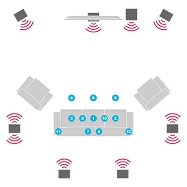 Audyssey's MultEQ products take measurements at multiple points in the room, with up to 32 measurement locations available with MultEQ Pro.