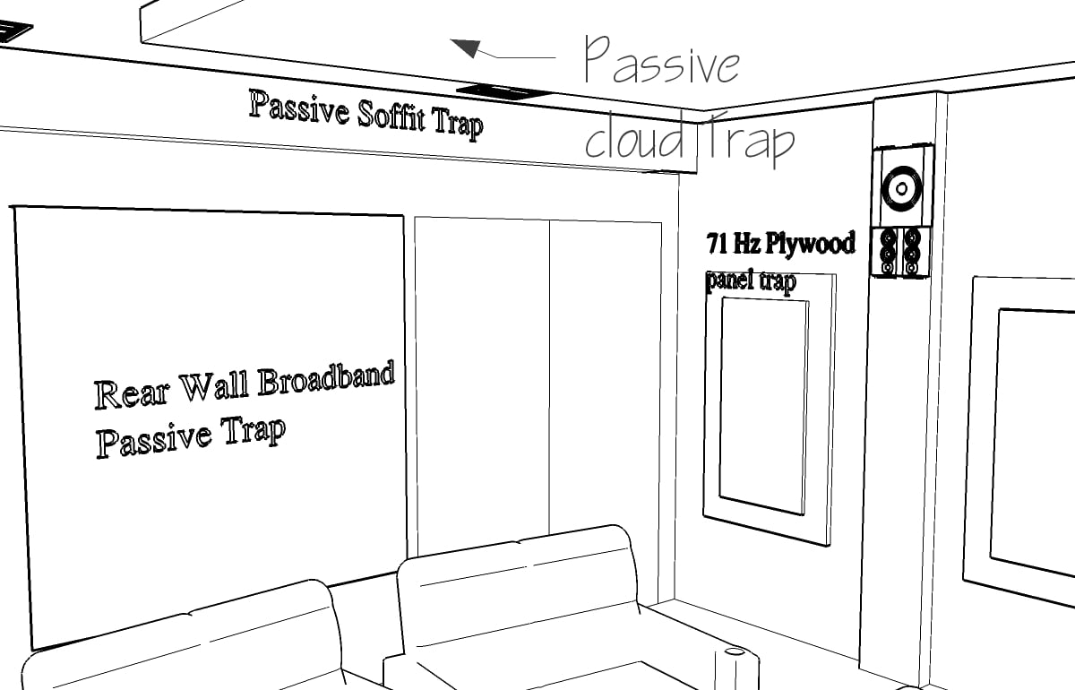 Active/Electronic traps: I only know of one, the Bag End E-Trap System. This uses a dedicated subwoofer & electronics to pinpoint two desired modal resonances. This product actually comes with software to aid in the process. The system then emits a counter wave to diminish these resonances…really does work and takes a lot less space than many of the above. Oh, and this is not an additional subwoofer for your system, it is just addressing modal resonance…actually pretty cool!