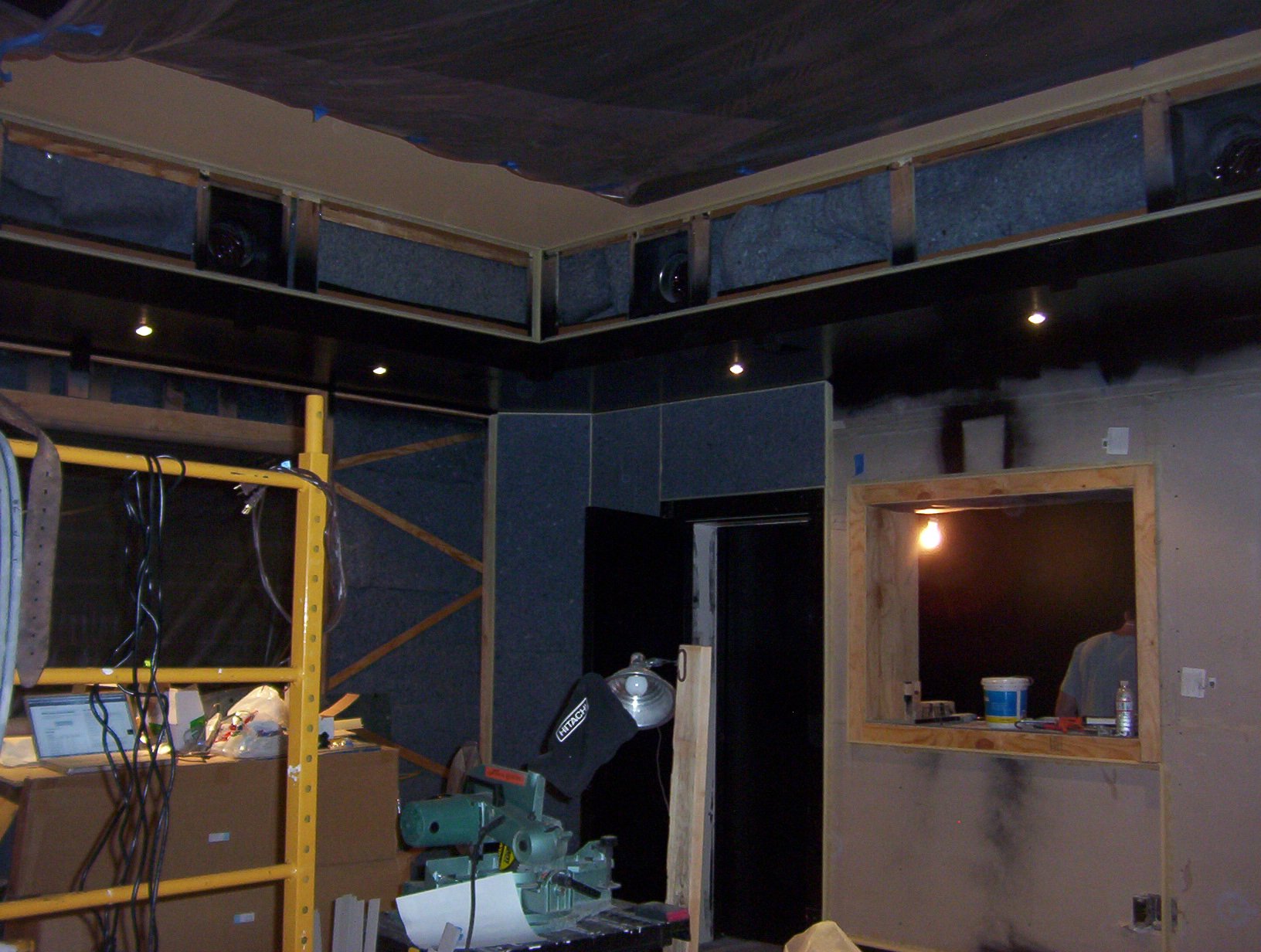 Diaphragmatic Traps rely on a sealed volume of air that is faced with a rigid material that vibrates. Plywood and drywall are common face materials for diaphragmatic. The center frequency is determined by the material, its thickness and the airspace. The “Q” (or bandwidth of affected frequencies) can and should be widened to address more frequencies by filling the space with a porous absorber (see above), but you trade maximum efficiency at center frequency. The diaphragmatic (sometimes called panel trap) has similar hazards as the Helmholtz. These are essentially simple yet extremely precise systems…execution is everything.