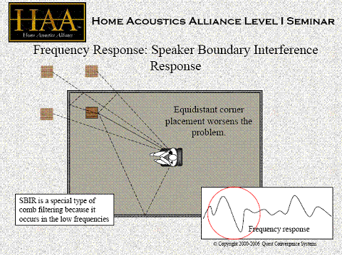 Next, we learned about low frequency acoustics. Not just subwoofer frequencies but frequencies below 500Hz. We applied what we learned about phase to speaker placement; in particular, boundary gain and boundary interference. Gerry showed the effects of having speakers too close to any boundary, walls, floor and ceiling. We saw how reflections from the speakers at the boundaries caused path differences or phase differences which in turn created gain.