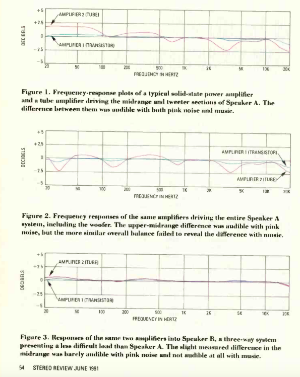 E. Brad Meyer (long-time audio expert and at the time—1991—President of the Boston Audio Society) wrote a fascinating, well-researched and meticulously documented article for Stereo Review (June 1991) showing how different speaker loads did indeed cause the frequency response of different expensive amplifiers to vary in a clearly audible manner. Nothing was malfunctioning; it was the interaction of the components that caused the audible anomaly.