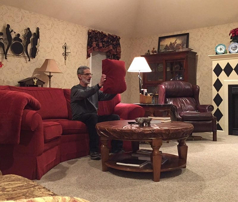 You’re gonna need a sofa pillow. A nice, generously stuffed sofa pillow, roughly 15” square. If your listening room is fairly large (you’re about 10 feet or more away from the L/R music speakers), here’s what you do: Play some music that’s rich in upper-midrange and treble. Lots of cymbals and percussion, repeating, steady. Well-recorded jazz is perfect for this.