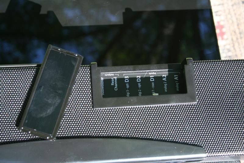 The back of the unit has a number of inputs and outputs under a removable cover. There are 3.5mm jacks for subwoofer and rear speaker outputs, plus two analogue inputs. There are two optical digital inputs and one coaxial input for multichannel audio. Next to this panel is another smaller area that has a service connection, serial IR, and the power port. Unlike most audio gear, the SLIMstage30 gets power from a laptop-like power supply. The advantage of this is that it will work with most any country's power, the downside is that you have a huge power block to deal with.
