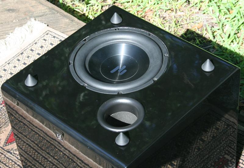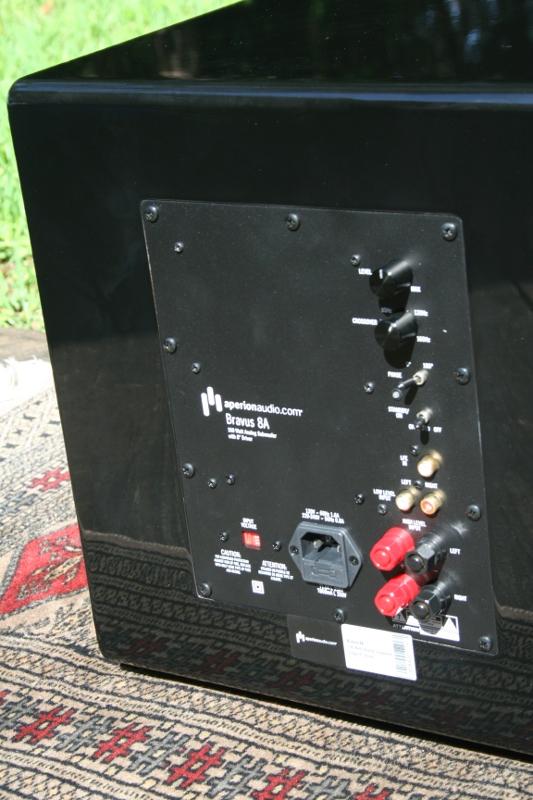 outdoor speakersThe Bravus 8A sub is a smallish (15" H x 13.5" W x 13.5" D) and light (33lbs) but you shouldn't misconstrue that to mean that it is in anyway not a “real” sub. We've seen so many surroundbars packed with “bass modules” that it is jarring to see a real sub in a package. The look of the sub is impeccable with a gloss black finish. Of course, don't touch it without a microfiber cloth nearby as it picks up fingerprints like crazy. There are two foot options with Bravus – both look like spikes. The fatter of the two spikes are actually rubberized and can be used on hardwood and tile. Then thinner spikes are made out of metal and are designed for carpets. Aperion, anticipating every possible consumer want, included small stands for those that want to use the metal spikes on hardwood/tile. The stands are the diameter of a dime with a small indentation in the center. On the opposite side there is a rubber pad so to not mar the surface of your floor.
