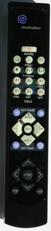 Master, Headphone Volume (IR and front panel) Subwoofer level (IR only) Source select, mute (IR and front panel) Surround/stereo (IR only)