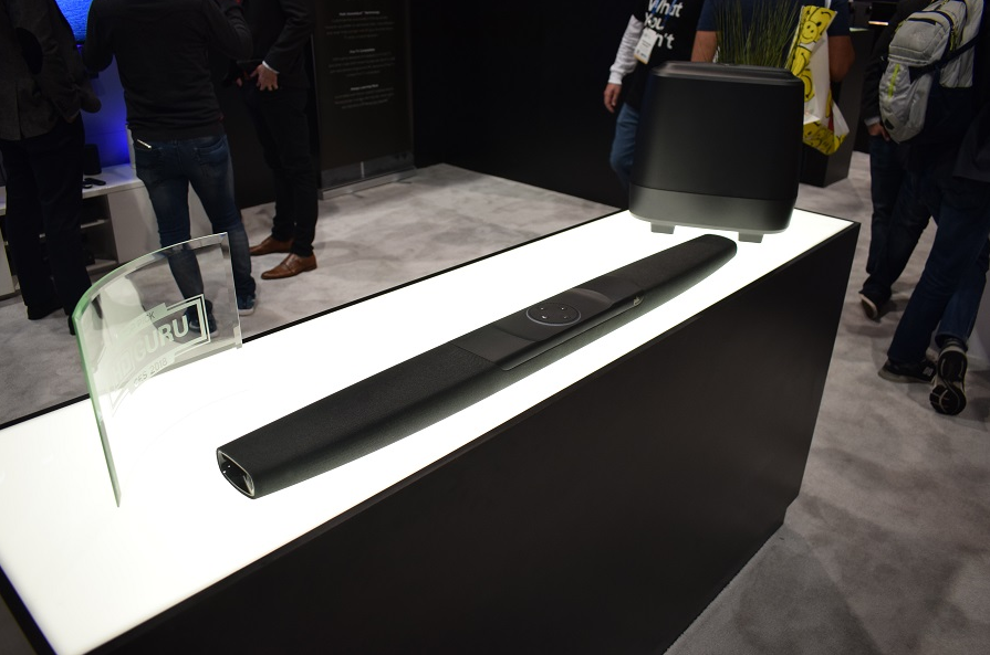Like most other higher end soundbars, the Ambeo comes with 3 HDMI, optical in, analog, Bluetooth, and wi-fi. As far as sound goes, this was the best soundbar without peripheral speakers we head at CES this year for recreating separate channels and 3D immersive sound. The price will be determined upon its release, but the Ambeo looks to be in the $3k range which is pretty high for a soundbar. But if you want Dolby Atmos or DTS:X sound and you want it set up in minutes instead of days, this might be an option if you have deep pockets.