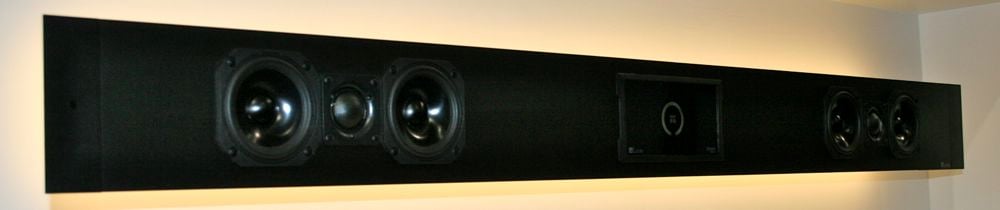 The Horizon HzOTO has dual 50 watt speakers and has bass down to 70Hz. It is rear ported which is odd for a speaker that is designed to be wall mounted but, if the boundary reinforcement is taken into consideration in the design, can be beneficial. The enclosure is constructed out of MDF and is built in Leon's Ann Arbor shop. Leon makes custom brackets for mounting to your display as well.