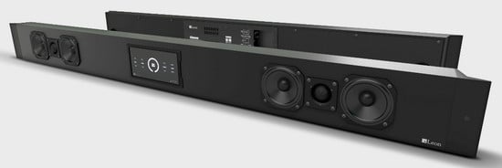 While the exact measurements will vary based on your display, the HzOTO is less than 2" thick and 4.5" tall. It utilizes two soft-dome tweeters and four aluminum cone woofers. Leon makes a wireless sub and the HzOTO has a built in transmitter for seamlessly adding more bass to your room. We recently got a chance to take a look at the HzOTO at CEDIA 2013 and it is pretty impressive. When mated with a display, it perfectly matches.