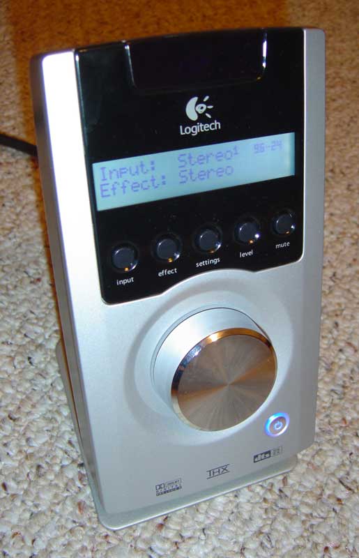 The brains behind the Z-5500 Digital Speakers is the SoundTouch Control Center. It features a two-line LCD screen and has inputs for optical or coax SPDIF, 6-Channel Direct (using the analogue outputs of a digital audio card), or three pairs of stereo inputs. The three pairs of inputs and 6-Channel Direct inputs are configurable as "either or" via a switch on the rear of the unit and cannot both be utilized simultaneously. An "Effect" button on the STCC controls the sound field effect selection (Stereo, 6 Ch Direct, Pro Logic II, DTS, etc).