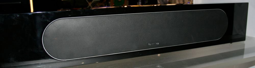 The Radius One is the replacement for the original Radius soundbar. It incorporates a string of C-CAM drivers arranged in three sets of 4” bass driver/1” tweeter pairings, each with its own dedicated reflex-ported chamber. Still, it manages to be 40% thinner than the original Radius at 6 7/8” H x 38 9/16” W x 3 1/8” D. It’s rated down to a believable 90Hz with an 87dB sensitivity.