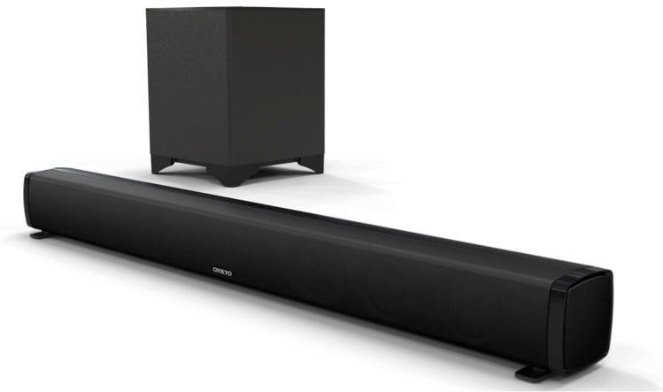 The LS-B50 is a pretty straight forward soundbar that hands off low frequencies to the included wireless subwoofer. It sports a 6 channel amplifier which powers two tweeters and four midrange drivers. There is a single driver on each end of the soundbar for a total of 6 woofers, but they appear to just be passive radiators, although I can’t be certain. Onkyo does not provide any specifics on the drivers used, but the arrangement is a little peculiar with the tweeters on the inside of the midrange units in a PR-M-M-T----T-M-M-PR (PR=passive radiator) configuration. The soundbar only weighs 8.6 lbs and measures 35.8" W x 3.76" H x 3.5" D.