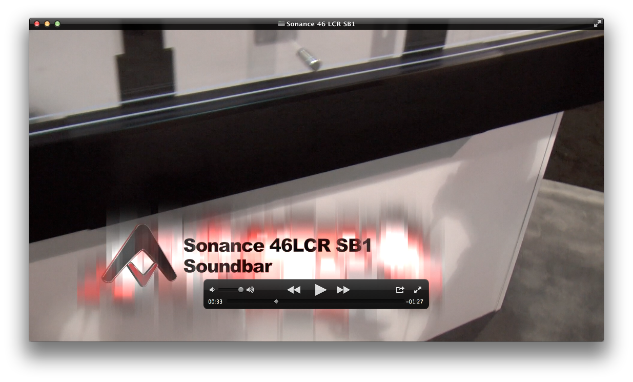 What makes this soundbar a little unique is that I bought a 50-inch flat panel television, you know—back when they cost a million dollars—and now I want to upgrade. Well, with most sound bars, now your upgraded TV is going to make that soundbar look small. Or maybe you just can't fund a soundbar to fit your TV's width period. With the Sonance 46LCR SB1, you can expand the grill to make it fit the width of any TV from 50" to 65". We were told the 46LCR SB1 will retail for around $1,400. As it's new, that price seems a bit expensive, but not entirely surprising.