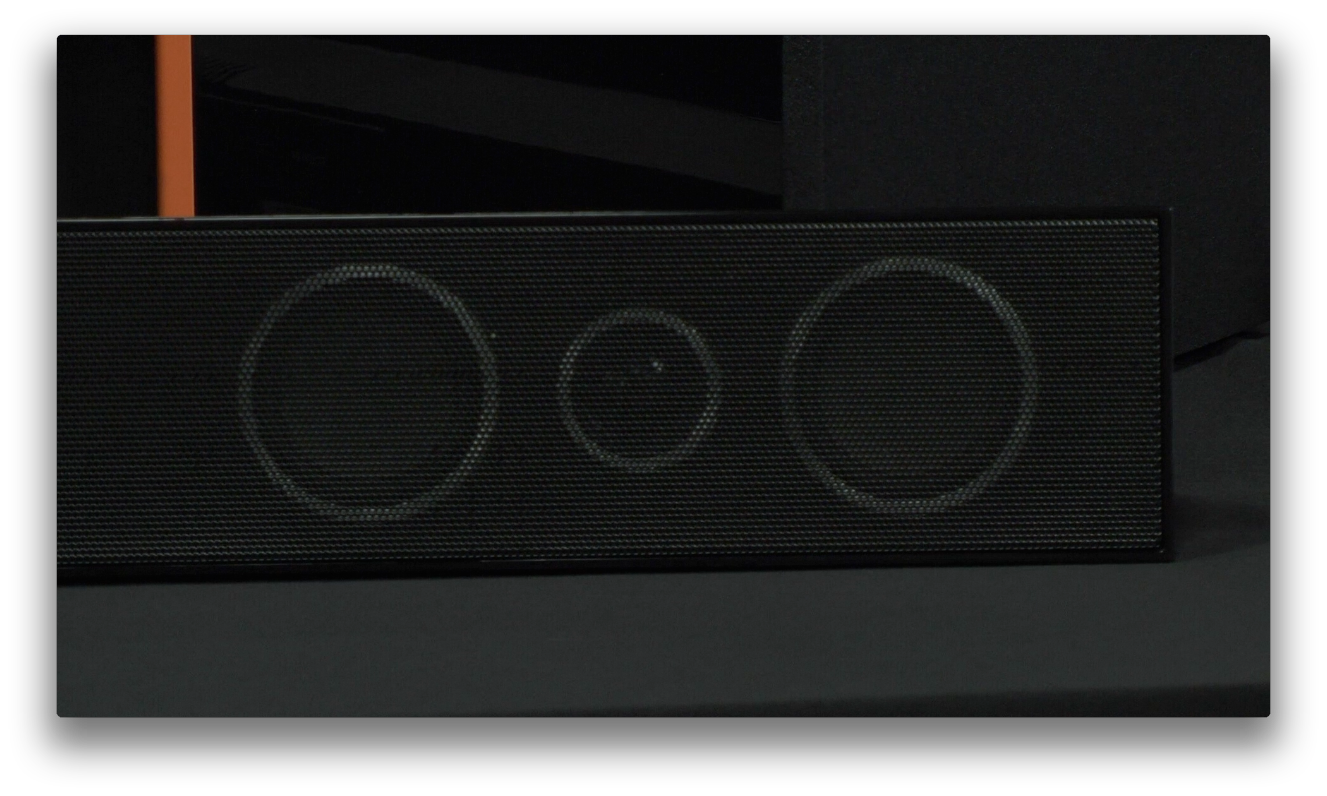 When we opened up the packaging we realized that aesthetics weren't top on the list for Toshiba. This sound bar is pretty vanilla, with a pair of MTM-like speakers on the left and right of the three foot wide bar. The enclosure is plastic. At the center is a display that reacts to input and volume as well as bass, treble and subwoofer level adjustments from the remote control. the whole unit is just 3.6" tall so it will fit underneath just about any TV we've seen or reviewed.