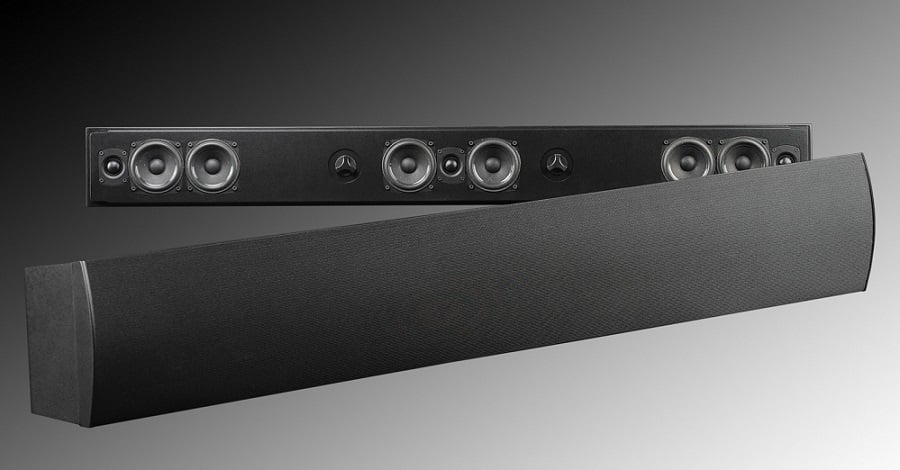 For more sound in a smaller enclosure Triad’s Nano LCR 3.0 is another option. Measuring only 1.6-inches deep by 3-inches high the Nano LCR 3.0 is half the height of the Mini SAT 3.0 but incorporates nine speakers into its diminutive size. The Nano LCR 3.0 comes with specially designed proprietary drivers in a fully-damped and braced aluminum body. The three 1” mini sats should do a great job with the highs, and the six 2” full range neodymium woofers should give this soundbar an impressive soundstage. Add a small sub and you have yourself an Audioholic worthy system with minimal wire runs.