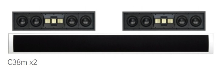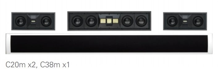 C20m x2 C38m x1 is also designed as a 4-ohm model to provide LCR playback with a frequency response of 35Hz - 20kHz +/- 2dB and a peak sensitivity of 92 dB and 93 dB, respectively. Like other members of the series, each Superbar model features a planar magnetic hybrid design. Apparently this is the model for those that really want more output from the center speaker as you can see with the 4 drivers dedicated for that channel.