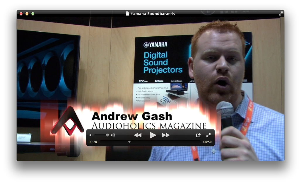 Now we've seen their sound projector before, but this year Yamaha is announcing two new models. They have the YSP-4300 and YSP-3300. Both bring 7.1 HD audio to your living room in a pretty small form factor that can be wall-mounted or placed on a shelf underneath your television. The wall-mounting of these sound bars is actually pretty cool as they seem to float off the wall like a fancy IKEA shelf system.