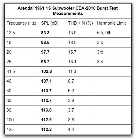 measurements are short-term bursts that show the subwoofer’s clean peak SPL