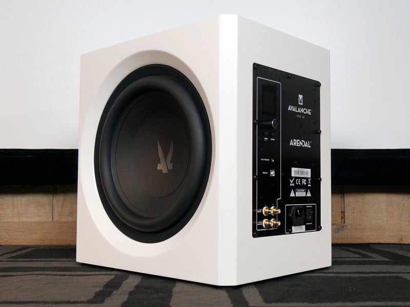 The 1961 subs use Arendal’s Avalanche 550 IQ amplifiers, a very sophisticated class-D design controlled by a powerful DSP engine. As the name suggests, it can output 550-watts RMS which should be plenty for the 12.2” drivers. Instead of the traditional knobs to control the basics like volume, phase, and low-pass frequencies, the 550 IQ uses a single knob and two buttons to control a 1.8” color LCD screen. This design enables a much wider and deeper control over all aspects of the sub’s operation. Phase can be controlled out to a single degree, volume can be fine-tuned to a single-decibel, and the low-pass filter can be set to exact frequency. The 550 IQ also features a 3-band parametric equalizer, so the 1961 subs do not need an external equalizer to manually alter the response. Response problems created by the room can be addressed on the sub itself. Operation modes and subsonic filters can also be engaged by the amp. The amp has two RCA inputs and outputs, and the inputs can be individually controlled so that the sub can accommodate connectivity with two different systems simultaneously.