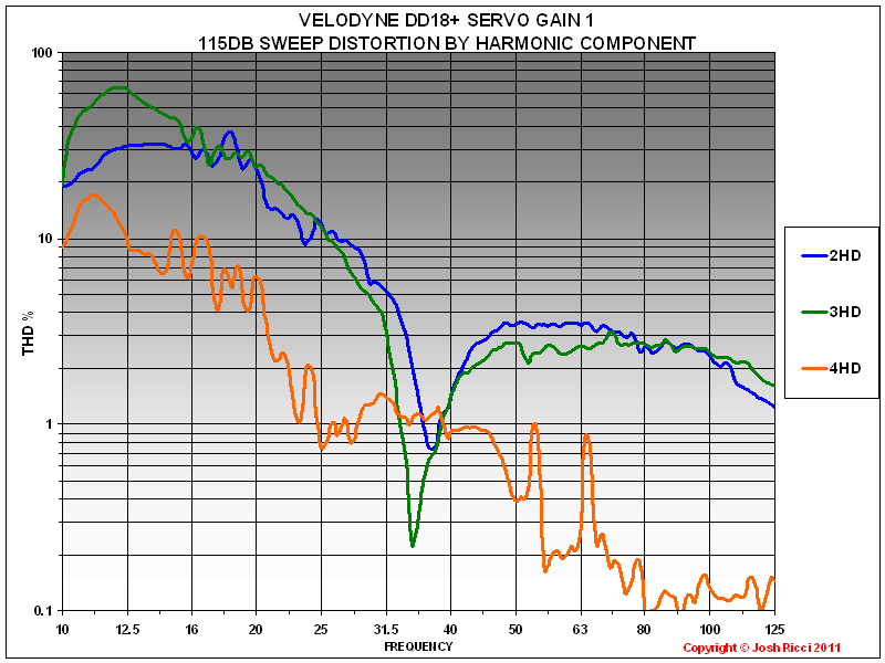 Velodyne DD18+ Servo Gain 1: 115dB Sweep Distortion by Component