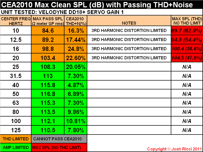 Velodyne Digital Drive Plus 18 (DD18+) Subwoofer Measurements Cont.
