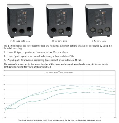 Maximum output for 25Hz and above can be achieved by leaving the subwoofer’s ports unplugged. Maximum extension below 25Hz can be achieved by plugging a single port and leaving the remaining two unplugged. Maximum damping, which is the least amount of output below 30Hz, can be achieved by plugging all three ports. This driver is actually designed to work well in a ported or sealed enclosure so if you prefer the performance of a sealed sub, you'd want to plug all three ports.