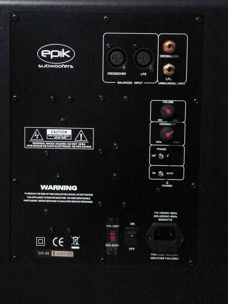 Regardless of the source, the material or the recording quality, the story was always the same. The bass coming from the Epik Sentinel was very well extended and provided tactile impact and the "throbbing" sensation that comes from effective pressurization of the room. But everything had a slightly "muddy" sound to it. Bass notes did not stop as quickly as one would hear in a live performance. One note would "overhang" onto the next, creating a lack of clarity and articulation. Individual bass notes were not clearly delineated from one another. All of this created slightly distorted-sounding bass in music.