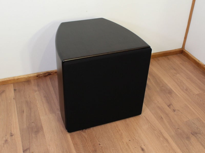 Speaking of Funk Audio’s standard offerings…The current line comprises three full range speakers and seven different subwoofers with the subwoofers available in either active or passive form and in some cases with two different power levels. The subject of this review will be the FW18.0 active subwoofer which is a front firing 18” long throw driver in a moderate sized sealed enclosure and powered by the M3 plate amplifier. This system is sold for $3234 shipped in its basic form. The FW18.0 is also available for $1895 shipped without the M3 amplifier in a passive version if you wish to provide your own amplification and equalization. The FW18.0 arrived at my house on a box truck with lift gate and strapped to a pallet. It was double boxed and protected by multiple layers of packing materials. The FW18.0 itself was also bagged and the whole deal was strapped down to the pallet. Certainly there would be little chance of damage to the unit unless there was a mishap with a forklift at some point. The FW18.0 itself and a power cord were the contents. No owner manual or setup guide was provided. The FW18.0 I received to review also did not have a grille, but grilles are available as are a variety of different feet. Due to the nature of the product he actual extra parts anyone may receive will depend on the individual order I’d imagine. The FW18.0 once unpacked is a moderate to large subwoofer but the curved side panels and rounded over front baffle make it appear a little smaller than it is while also giving it a much more graceful look than your basic black cube. The finish on the review unit was a dark Padauk veneer that is one of the standard finishing options available and should hide well when needed in a darkened room but also has some “pop” to it when the lights are on. Due to the small batch, handmade nature of these units there is some variation to be expected in the finishes unit to unit and tiny blemishes or flaws may be present. Again this is just the nature of the individual way in which these products are made and in my experience a mass manufactured, assembly line perfect consistency should not be expected. I am not talking about glaring issues here just small things like differences in the veneer, etc... Think of it as bits of character on a piece of artwork. The FW18.0 is a sexy looking subwoofer and it along with the other Funk subs I have owned were among the best finished and visually arresting units I have seen.