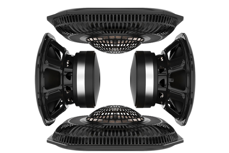 Drivers: Two 8˝ long-throw high-output bass drivers and Two 10-1/2˝ x 9-1/2˝ quadratic planar infrasonic radiators