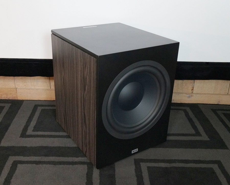The 125-watt amp is a class-A/B design, and it uses a fairly large transformer and some big capacitors as well as a beefy heatsink. It’s a bit old school in these days of class-D plate amps with DSP, but that isn’t necessarily a bad thing. 125-watt RMS seems a bit weak given the price point of this sub, but there is more to amplifiers than just a wattage spec. Also, Class AB amps with a linear power supply tend to have more dynamic headroom then their Class D counterparts with SMPS. Kudos to HECO for honestly stating the spec, since they could have inflated it and no one would be the wiser. And even with its amplification spec, that doesn’t describe how the power is delivered, how it is sustained, how reliable the unit is, or noise floor or thermal characteristics, among other aspects of operation. As far as loudness goes, the sensitivity of the driver has a whole lot more say in that respect than the raw wattage from the amp. A high-sensitivity driver can blaze with 125 watts. We would have to look at the end performance before making judgments here. Amp controls are pretty basic with a volume knob, a low-pass filter knob going from 50Hz to 150Hz, a 0-180 degree phase switch, an on/auto-on switch, and a power switch. Connectivity is comprised of left and right RCA inputs. For calibration with a receiver or processor, be sure to set the low-pass filter at its maximum frequency of 150Hz since there is no filter bypass.