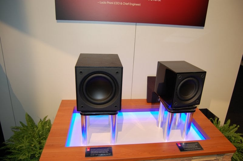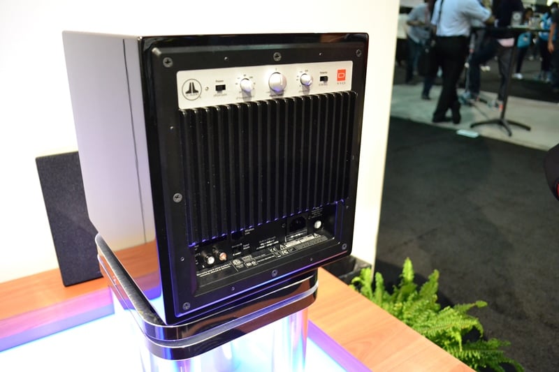 Performance is par for the course for JL Audio. The d108 dips down to 29Hz -3dB while the d110 reaches 25Hz. The d108 measures 11.37 by 10 by 13.23 inches and 26.4 pounds and the d110 measures 13.4 by 12 by 15.86 inches and weighs 38.2 pounds. We imagine this is just large enough to get the driver and the amp in the box with not a lot of room to spare. We're particularly interested in how well these will perform in room as they are quite small but have very impressive specs for their price. Check out some of our pics from the show below.