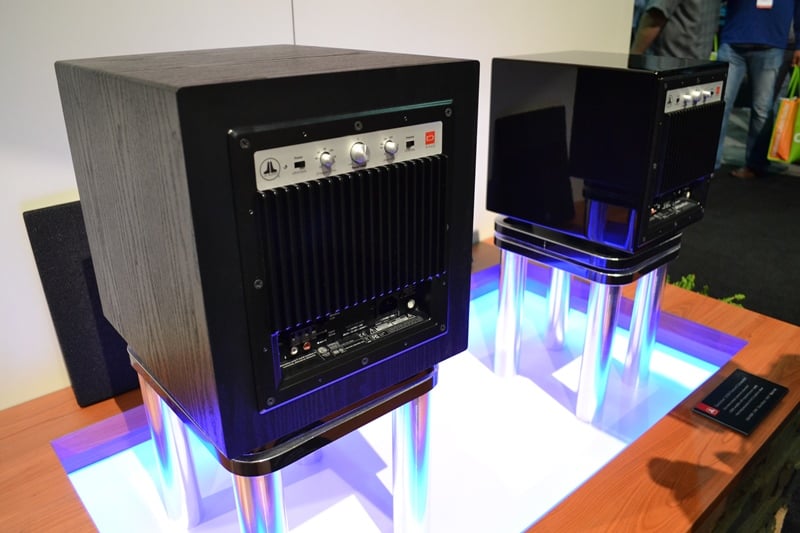 Last year at CEDIA, JL Audio announced the E-series subwoofers. This year, at the 2014 CEDIA, they continued that trend with the d110 and d108 Dominion series subwoofers. These two subs rock 10" (d110) and 8" (d108) long-throw drivers. Contained in sealed boxes, the Dominion subs have massive amps - 500 watts for the d108, 750 watts for the d110. The cabinets come in either high gloss black or black ash (likely a vinyl wrap). Targeted at the budget conscious, the Dominion series subs cost $1099 (d110 Gloss Black), $999 (d110 Black Ash), $899 (d108 Gloss Black), and $799 (d108 Black Ash). The tags at CEDIA had the d110 price for gloss less than the black ash but we're pretty sure that was a mistake. We've never seen a gloss finish that was less expensive than the non-gloss option.