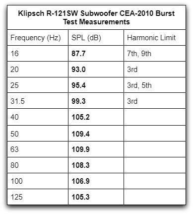 Klipsch Reference R-121SW Subwoofer Measurements & Conclusion
