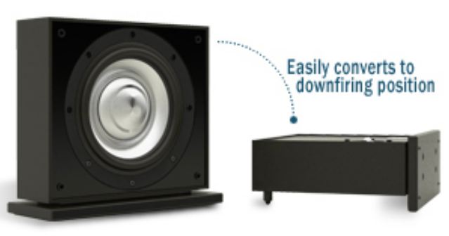 14.5” and, as mentioned, 4.5” deep. This suggests that it can be placed in a wall if you really wanted (and given Leon Speaker's custom install background, is probably only a phone call away). But that is not the only placement option. The A10-UT comes with a stand and obviously won't take up much floor space. Since it is a sealed design, you won't need to worry about placement near barriers. On top of this, Leon has included an integrated stand so that you can lay it over, converting it to a downfiring sub. This is perfect if you'd like to slide it under a couch.
